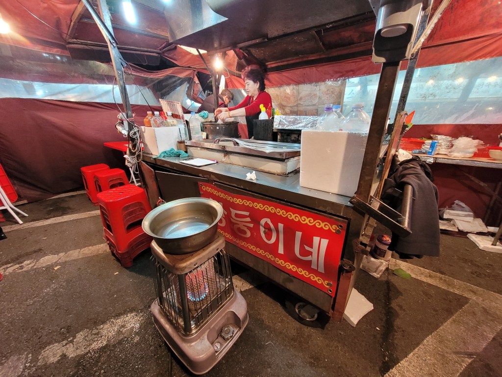I wander through the flap, get a little bit of a look from the lady cooking there, but she ambles over with a menu for me to look at. I already know what I want though, amazingly something I haven’t had once while here given it’s a classic – tteokbokki.
