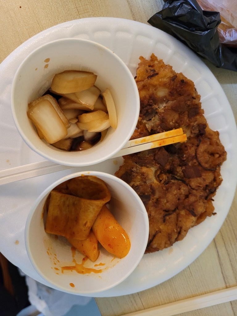 I couldn’t be fricken happier if I tried. I finally feel like I’ve conquered my food ordering nervousness and feel proud of myself for reaching this point. If there is one experience that can sum up the transformation I feel I have gone through this trip, this is it. Left over mungbean pancake and tteokbokki in a cup followed by egg and peanut bread.