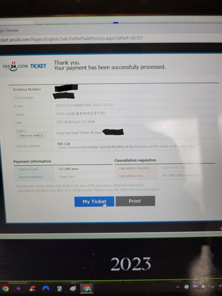 I have to say, the act of buying such a precious commodity takes its toll on the nerves. I don’t think I have ever before been so incredibly excited and terrified all at once. I wanted a ticket. But then if I got a ticket, it would mean I’d have to travel back to Korea for a 1-day event (not in the plan or budget for the year). I wanted a ticket. But then if I didn’t get a ticket, I think my soul would have been really quite crushed (also not in the plan for the year).